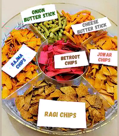 Order our Roasted Healthy Snacks today – freshly made and full of flavor! From Onion Butter Sticks and Cheese Butter Sticks to Rajma Chips, Beetroot Chips, Ragi Chips, and Jowar Chips – we’ve got your healthy cravings covered.